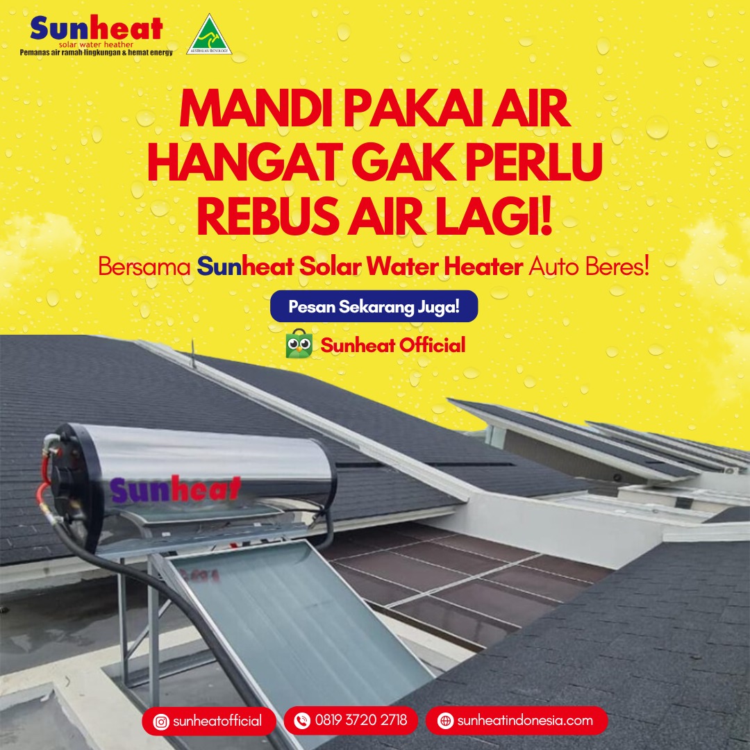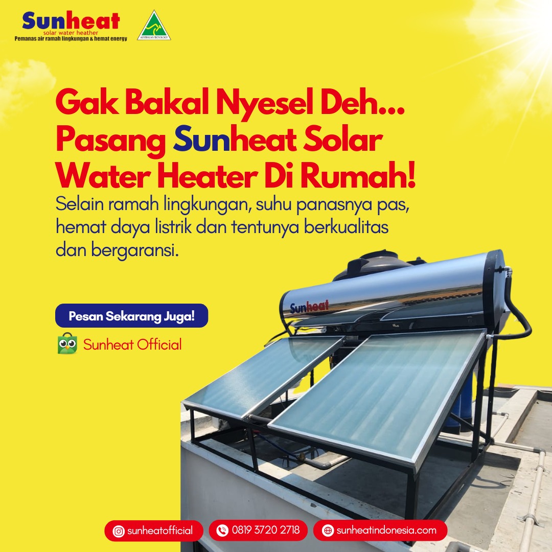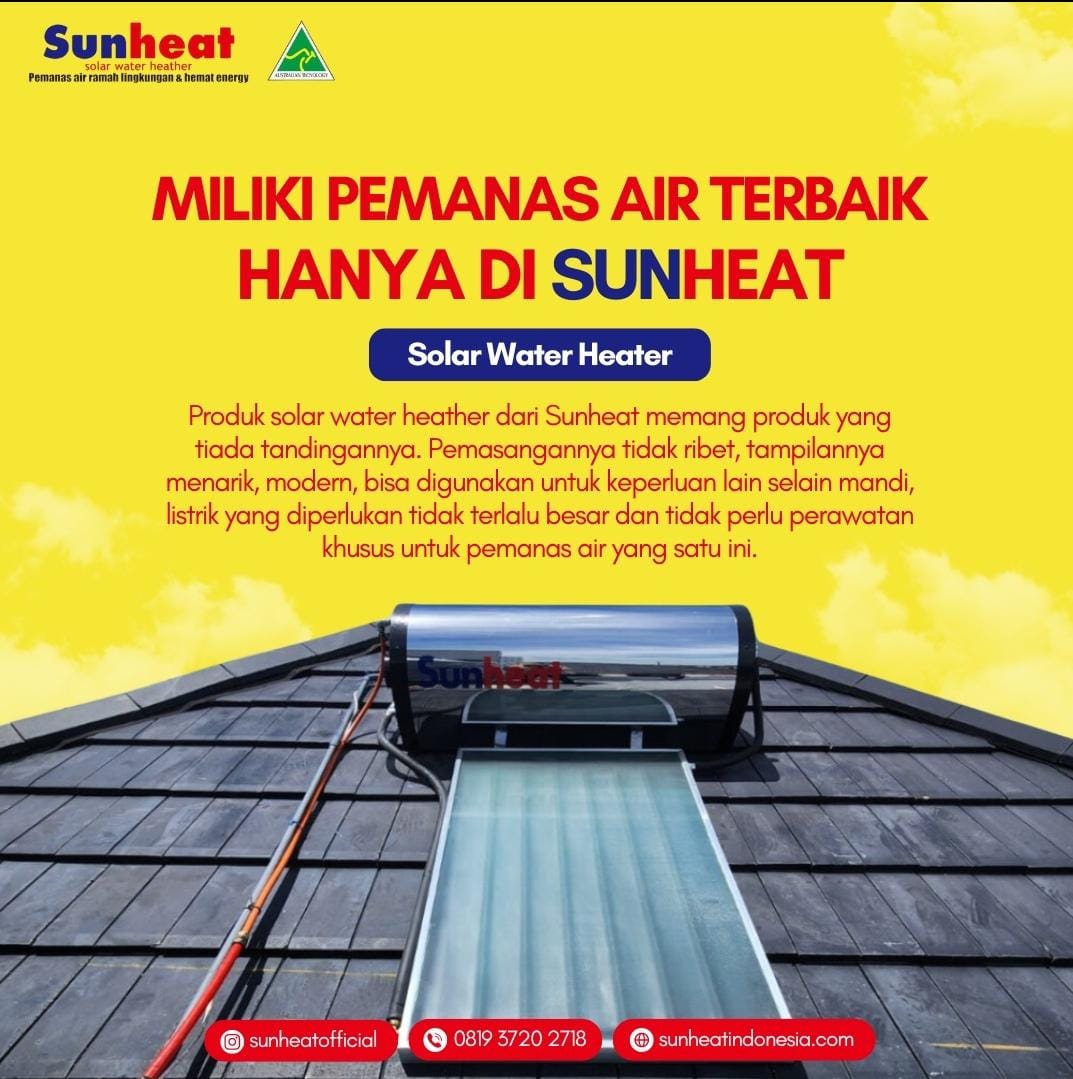 Pasang solar water heater terbaik di Sun Heat Indonesia, hemat energi, harga terjangkau, tanpa perawatan rumit, air panas stabil.