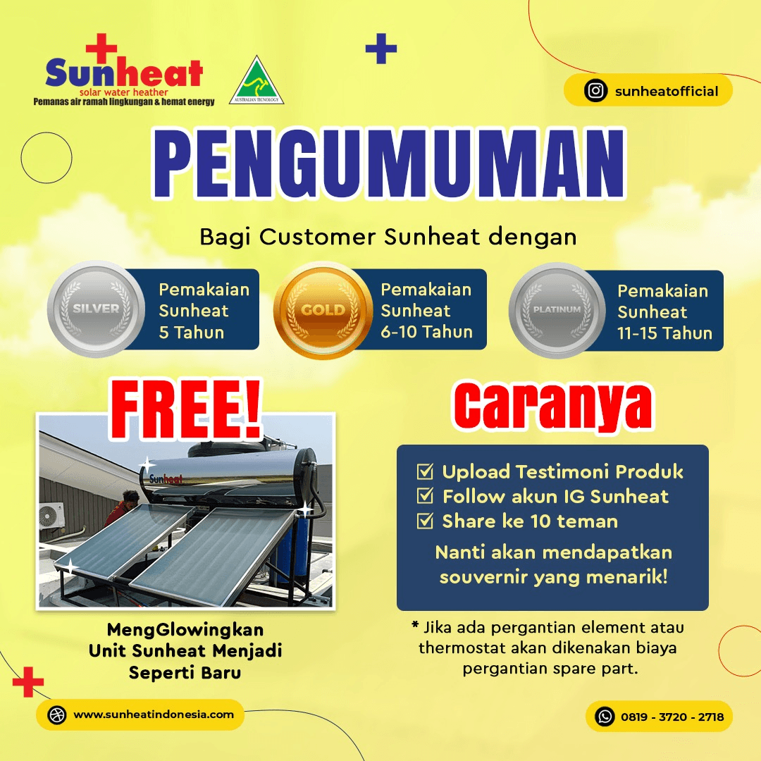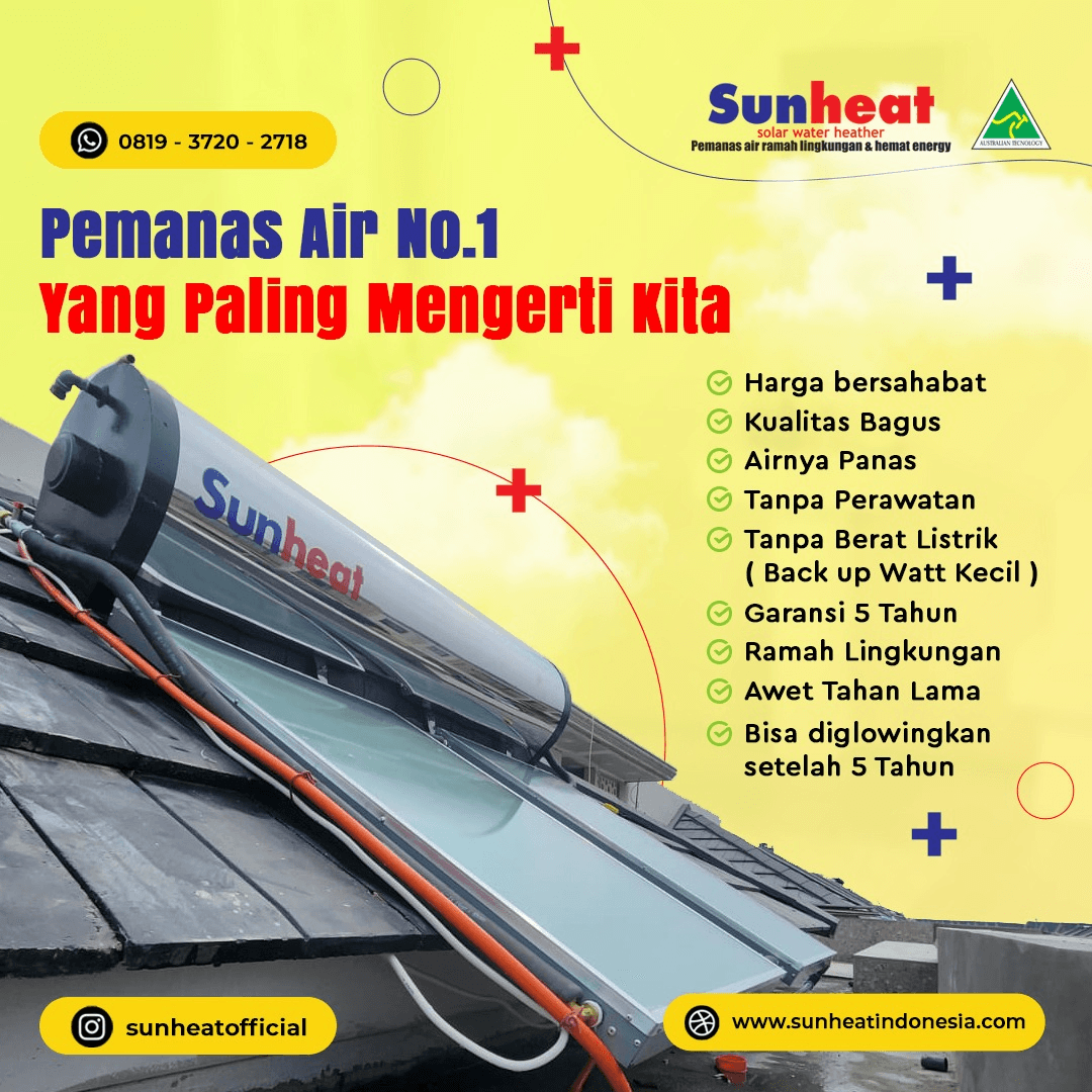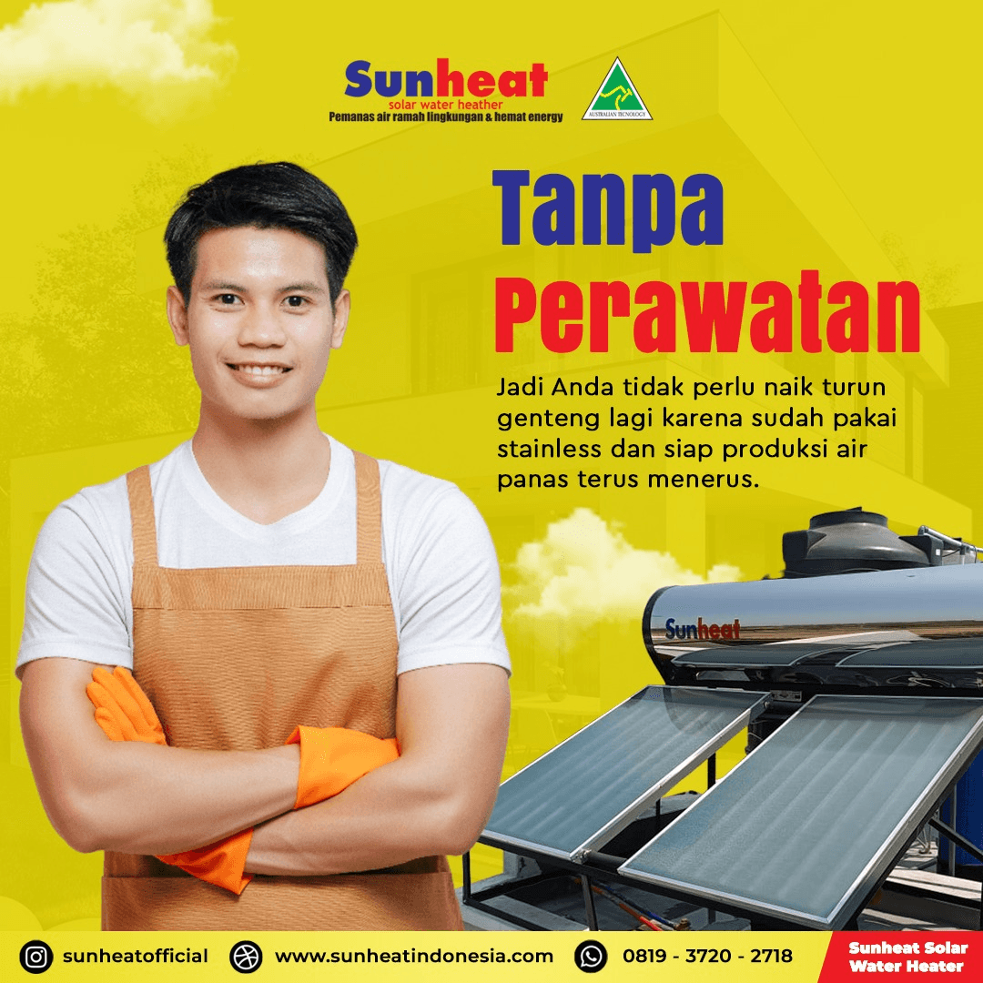 Pasang solar water heater terbaik di Sun Heat Indonesia, hemat energi, harga terjangkau, tanpa perawatan rumit, air panas stabil.